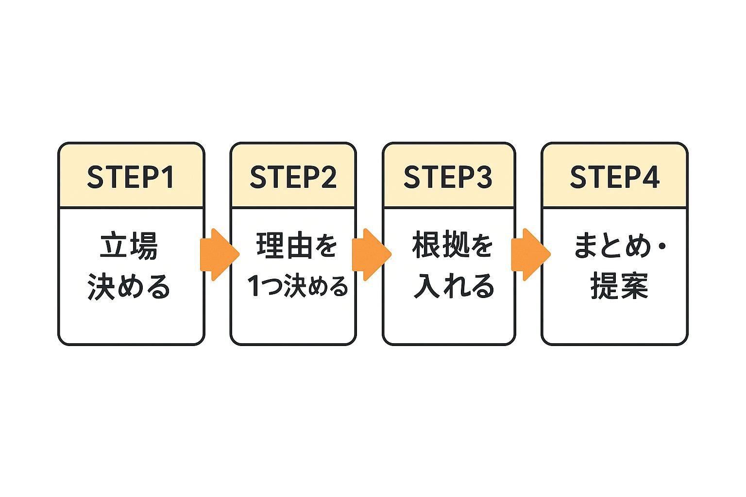 順番にそって整理するだけで、初めてでも説得力のある反対意見が書けるようになります。